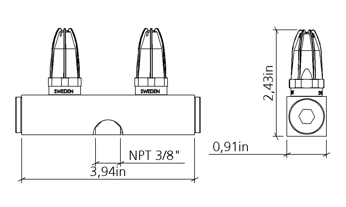 Distance Matières utilisées: EN AW 6063, Zn ZP0410, EN 1.4305, CW614N, NBR