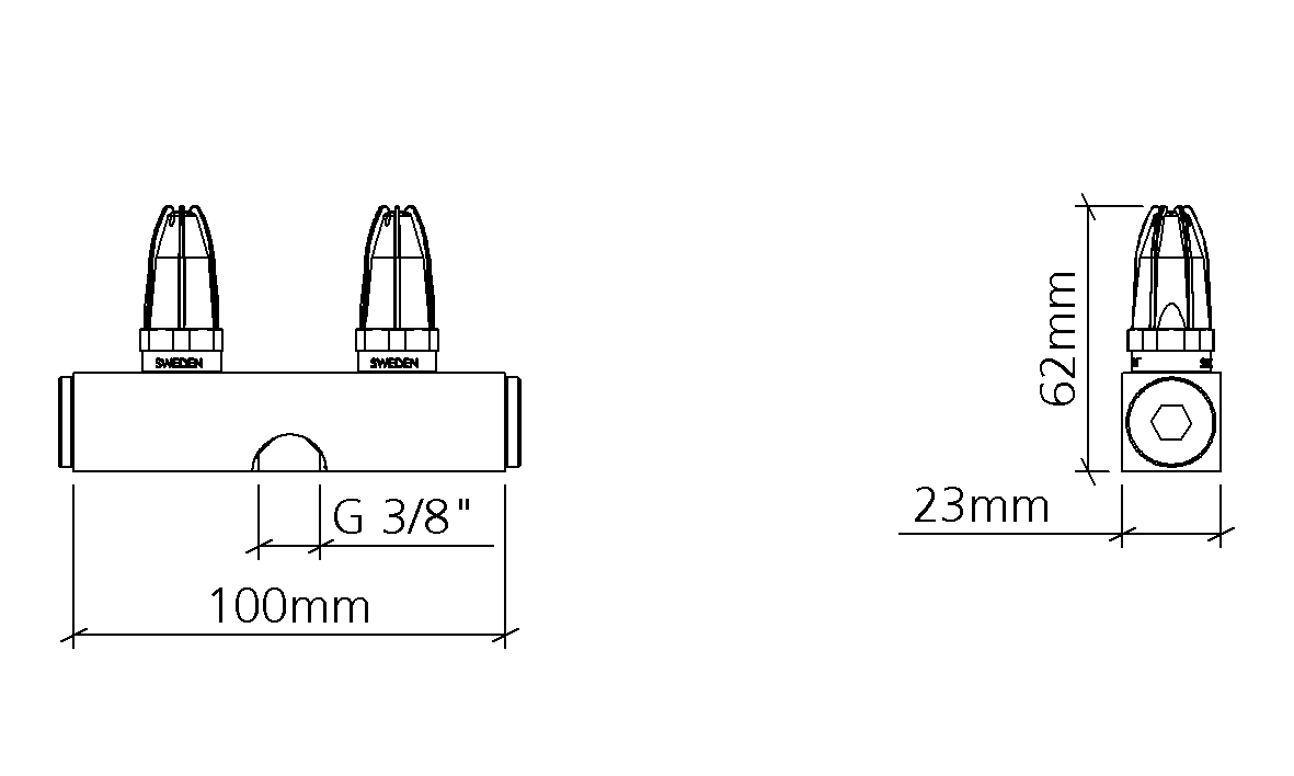 Blowing dist.Material specification: EN AW 6063, Zn ZP0410, EN 1.4305, CW614N, NBR